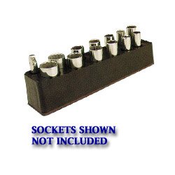 3/8 In Drive Deep Socket Organizer w/Magnetic Base - BlackFeatures: Will hold a standard 12-piece set of either English or metric sizes w/2 additional holes for extensions or universal joints. Accommodates 7/32 thru 7/8 SAE and/or 5.5 thru 22 mm. Magnetic base holds tools in holder & holder to work surface. Strong enough to hold upside down. Magnetic material is non-transferable. Magnetic material will not magnetize tools or damage on-board automotive computers & other related circuitry. Fuel/oil resistant non-stick high impact plastic. Fits most tool boxes & drawers. Easily tranferable from tool drawer to work area.